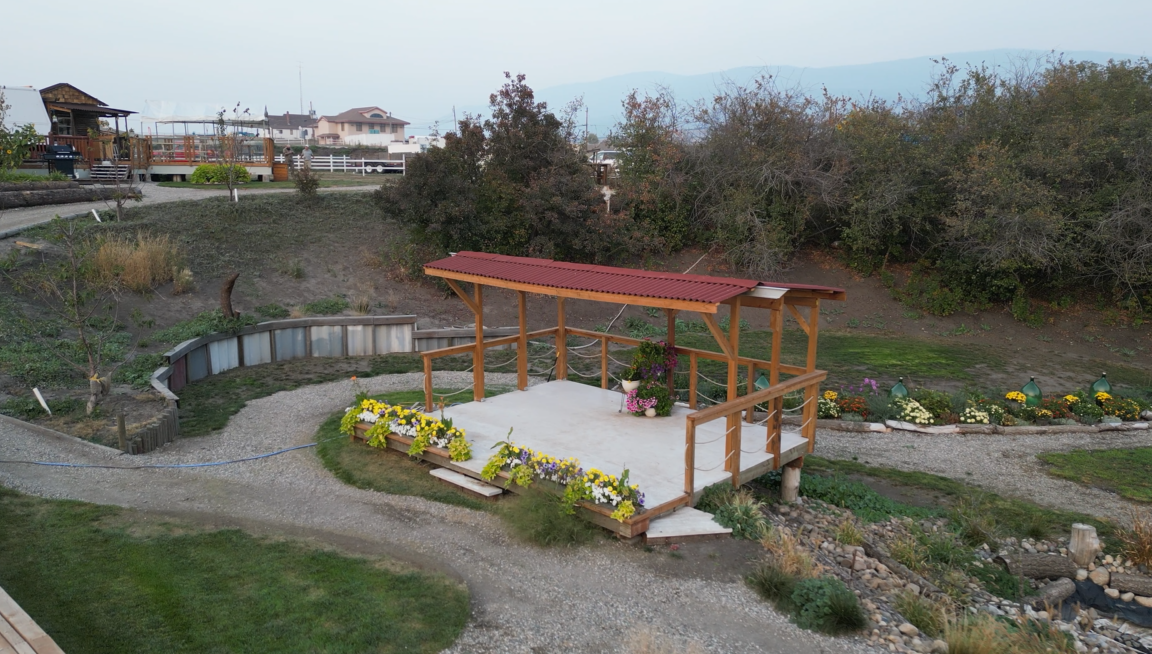 Raised 14’X18‘ Stage and Amphitheater c/w bench seating for approximately 100 guests