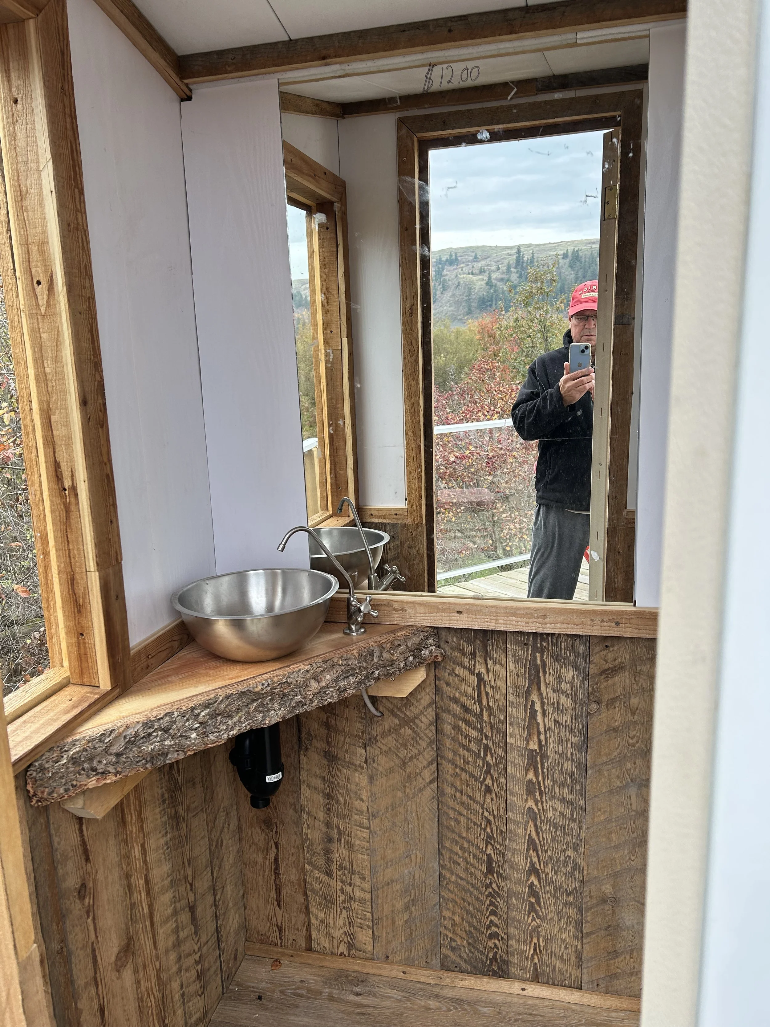 The Weasel Burrow overlooks the complete coulee with the best viewpoint of the stage and amphitheater. The unit is closest to all the upper facilities, dining and cooking amenities with a 3-piece bathroom trailer and outdoor shower. Birders will witness the aerial displays of the eagles verses ospreys the soring hawks, blue herons and various songbirds hiding in the surrounding bushes. The Weasel is a miner’s style tent with a two-piece bathroom. It sleeps two at an affordable price.